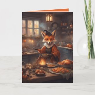 Fox Witch cooking chicken dinner Halloween by annabettenorth Dog cooking on Halloween in his kitchen greeting by annabettenorth ...